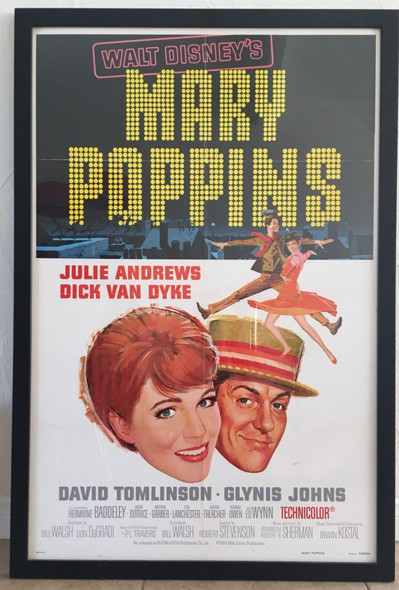 Original 1964 Disney Mary Poppins Large Movie Poster Framed Etsy