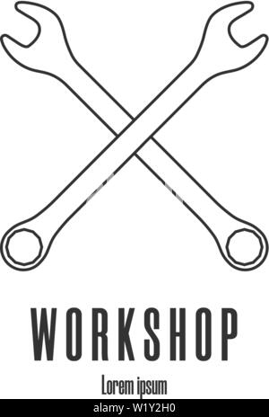 Line Style Icon Of Crossed Wrenches Workshop Mechanic Repair Service Logo Template Clean And Modern Vector Illustration Canstock