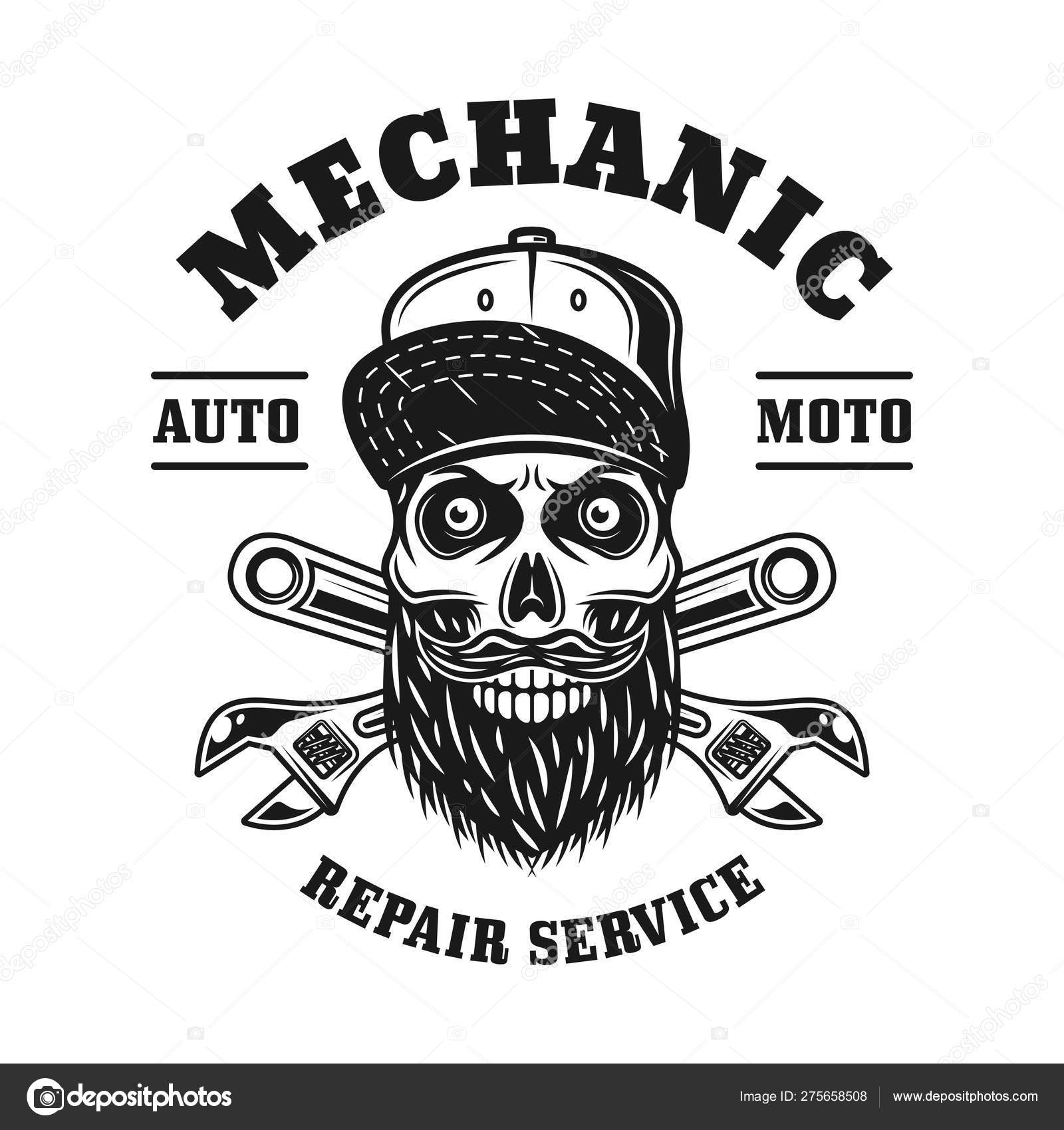 Mechanic Skull And Crossed Wrenches Vector Emblem Stock Vector Image By C Flat Enot 275658508